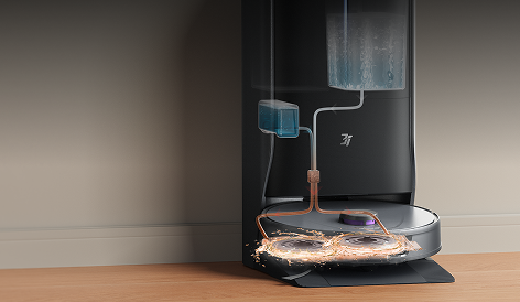 - Each time it washes the mops, the base station automatically refills the robot's water tank, which takes about 8 seconds.
